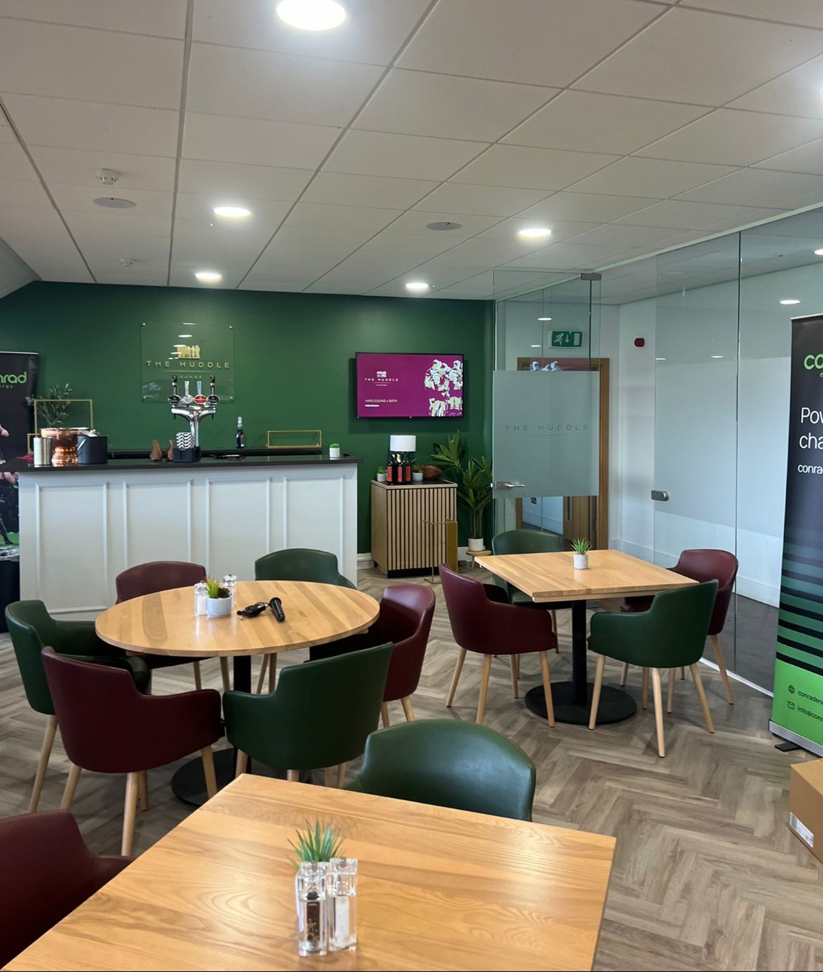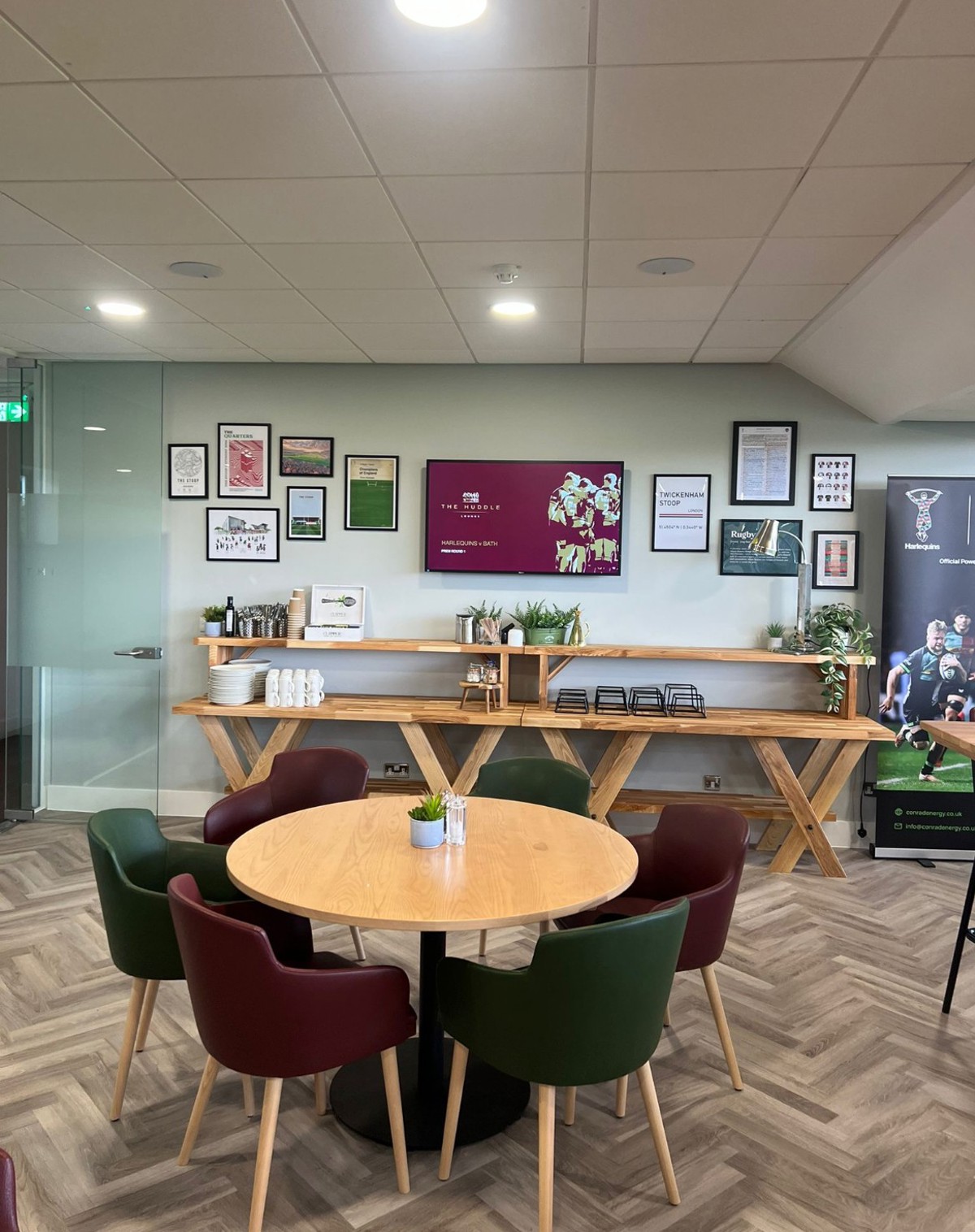 The Huddle has floor-to-ceiling windows and overlooks the pitch. Located on the first floor of the DHL Stand, this facility is a great space for board meetings, small private events and training courses. Spanning over 73 sqm. The Huddle offers a bright functional space with pitch views.
